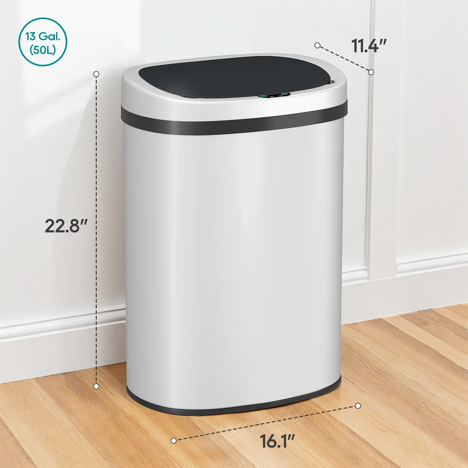With a 13-gallon capacity, this can handle daily waste effortlessly. Compatible with standard 13-gallon trash bags, it suits large households or offices. Segregate waste types and organize spaces in kitchens, offices, or bathrooms.