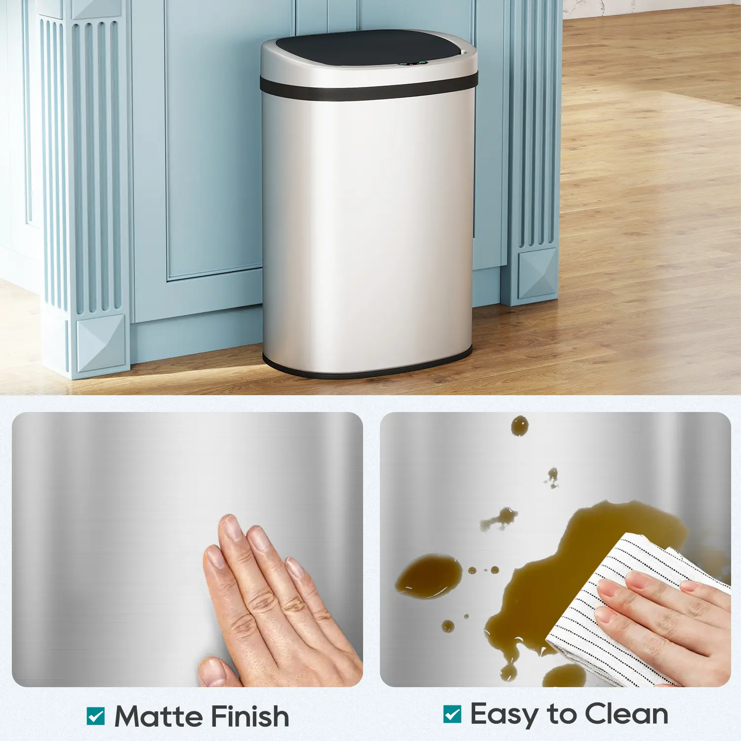 Stainless steel wire drawing ensures easy cleaning. Filth can be removed with a rag. Good sealing keeps odors out, maintaining a fresh space.