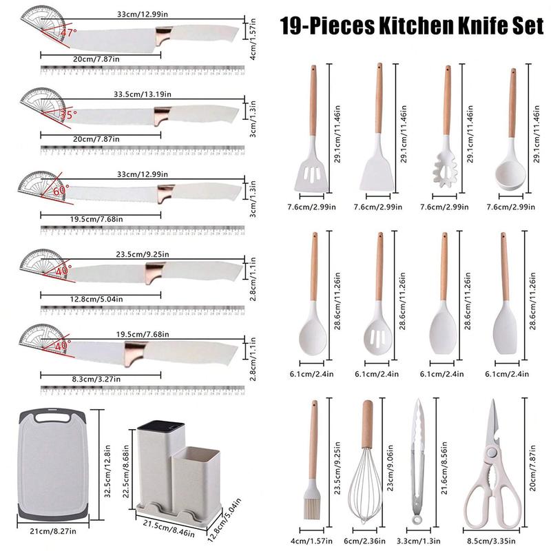 El set de cocina perfecto! 🔪 Ame el color!🤍 Trae 19 piezas, incluye todo lo necesario !✨️🫶🏻 #kitchenset #knifeset #knifesetforkitchen #musthave #kitchenthings