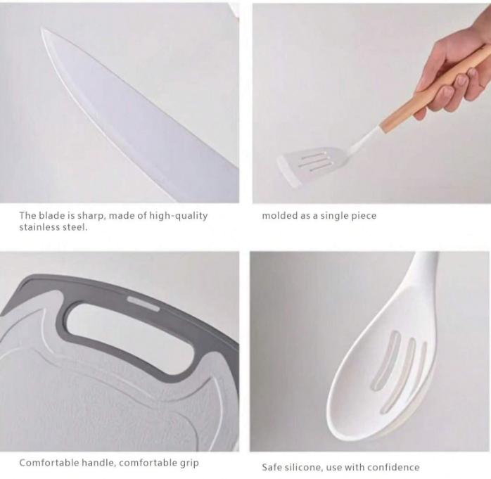 Que tus utensilios nuevos se limpien tan fácil a la primera vez es una buena señal de que son de buena calidad o tienen un buen recubrimiento, y la mejor forma de mantenerlos así es limpiarlos inmediatamente después de usar con agua, jabón y una esponja suave, secándolos bien para evitar manchas o residuos .  Excelente calidad de estos utencilios !✨️  El color es hermoso! 🤍🖤 #kitchenthings #kitchenmusthave #musthave #kitchen  #knifeset
