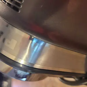 I have a much older version of this mixer that is still running strong. This new model is much quieter. Less than a month and the "KitchenAid" sticker is bubbling off while sitting on pantry shelf that is temperature controlled. Makes me wonder if it's refurbished.