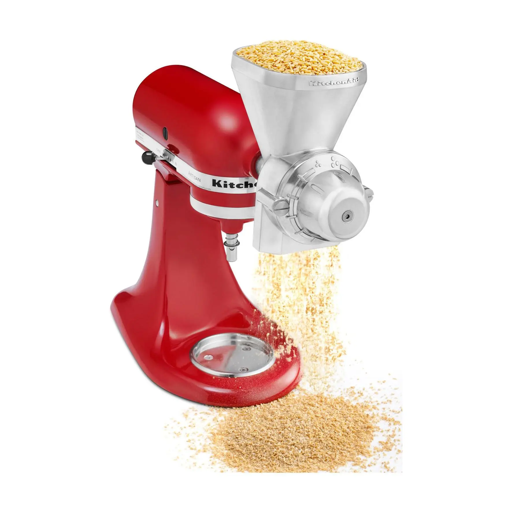 Transform your stand mixer into a versatile grain mill with this durable, all-metal attachment. It easily connects to the mixer's attachment hub, allowing you to grind whole, low-moisture, low-oil grains like wheat, corn, oats, and barley into fresh flour. Adjust the coarseness from fine to coarse with a simple turn of the knob to suit your baking needs. From KitchenAid.