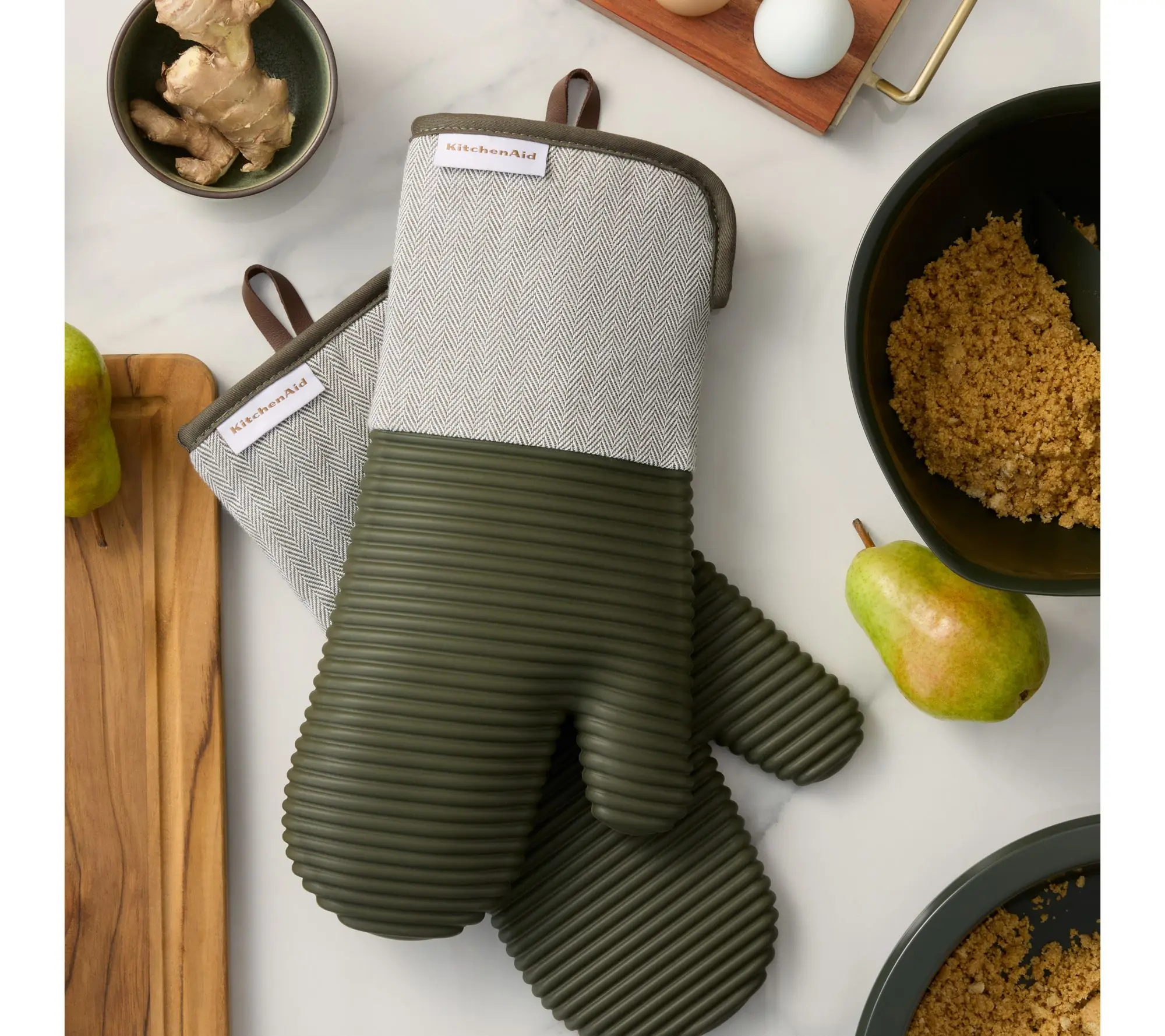 5. KitchenAid Ever green Design Se ries Herringbon e Oven Mitts Se