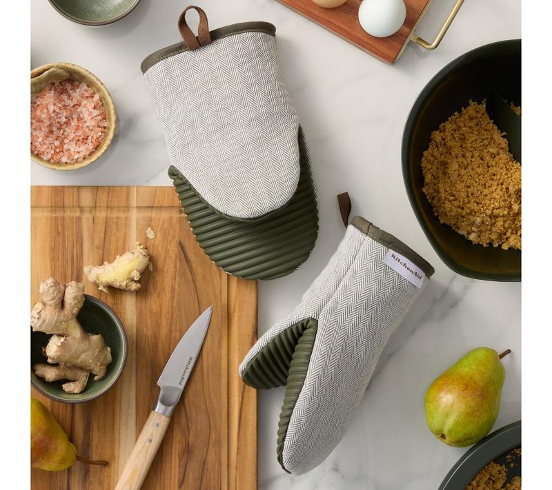 Cooking just got a little easier with the KitchenAid Evergreen Design Series mini oven mitts. Perfect for handling hot cookware, these mitts feature ribbed silicone while the textured design ensures a secure grip. From KitchenAid.