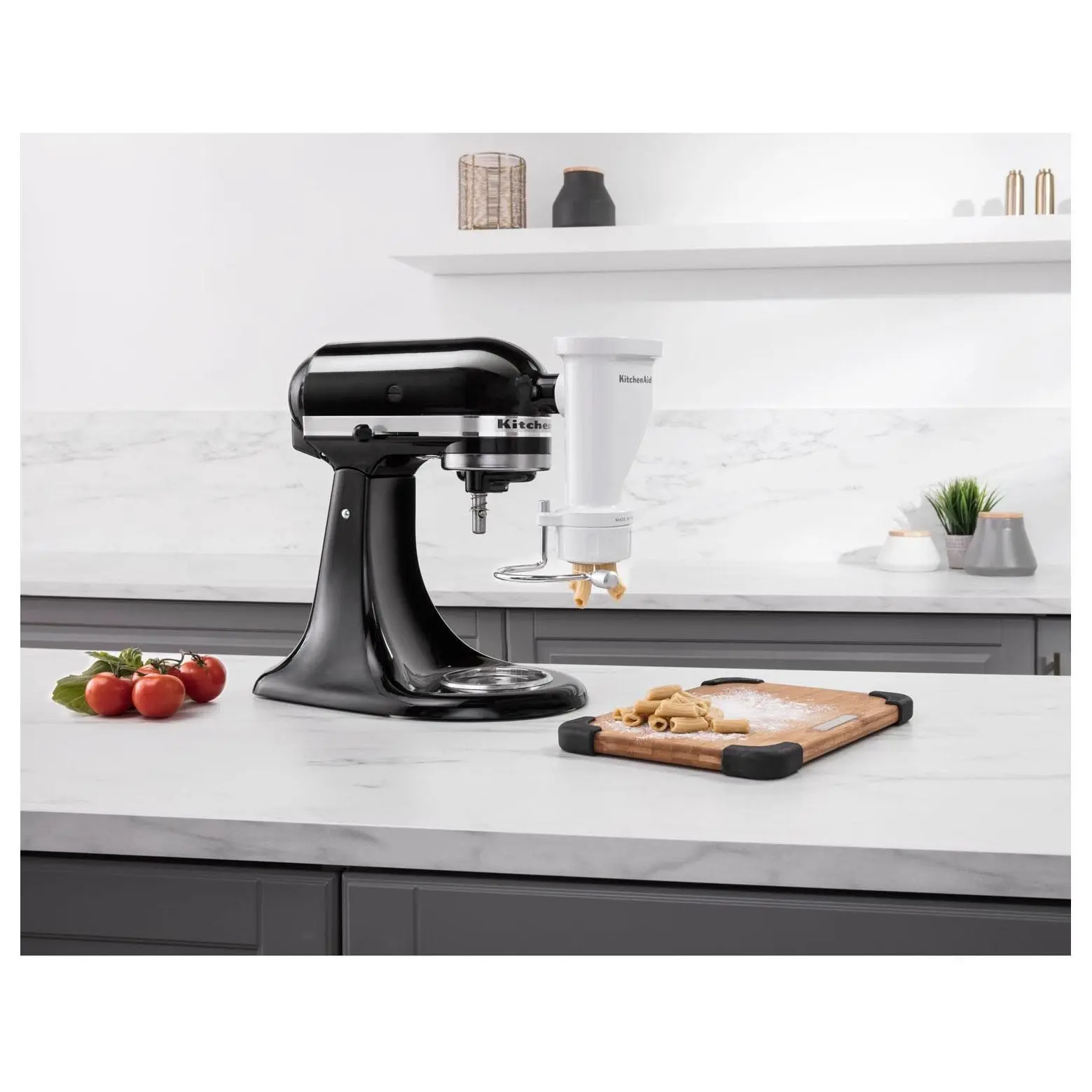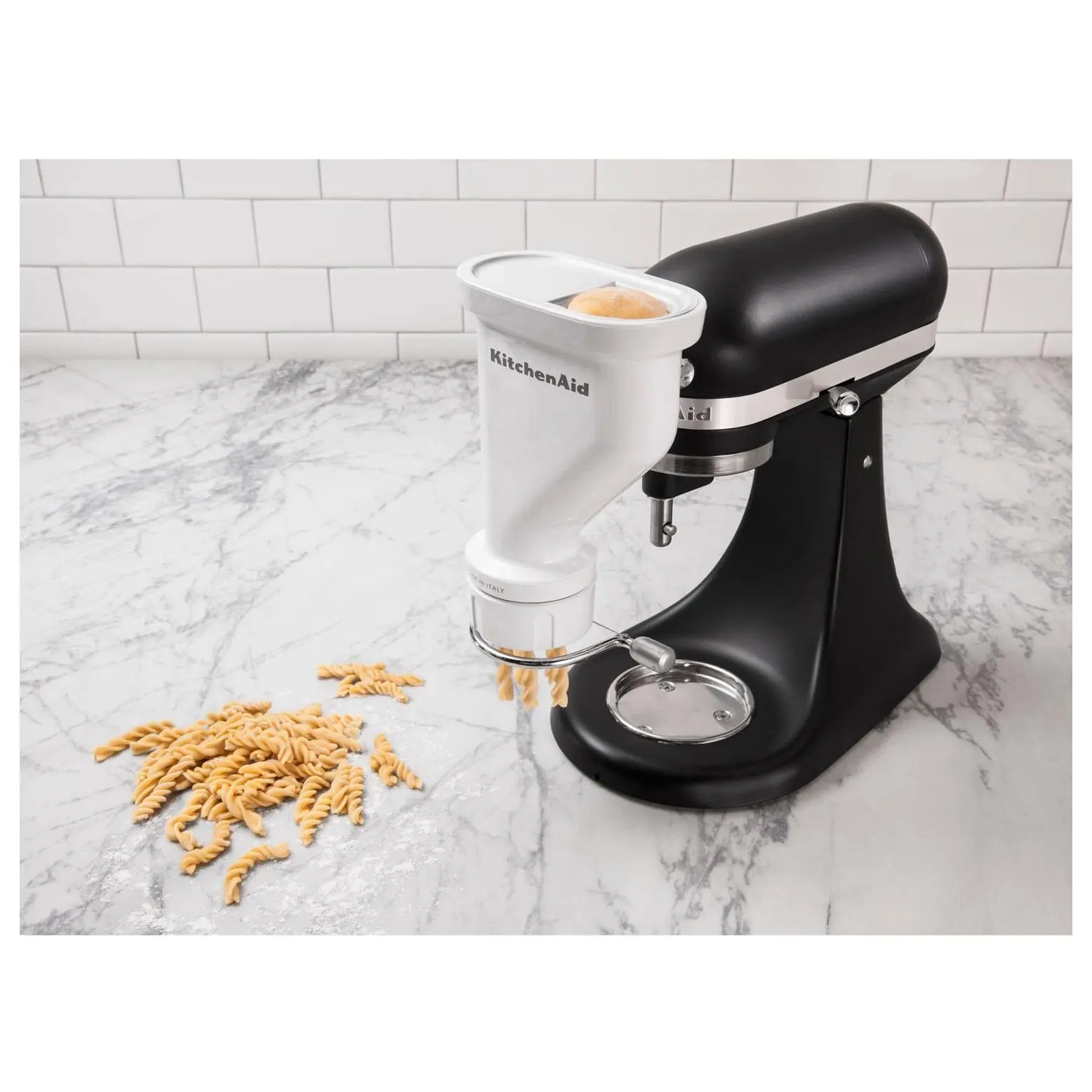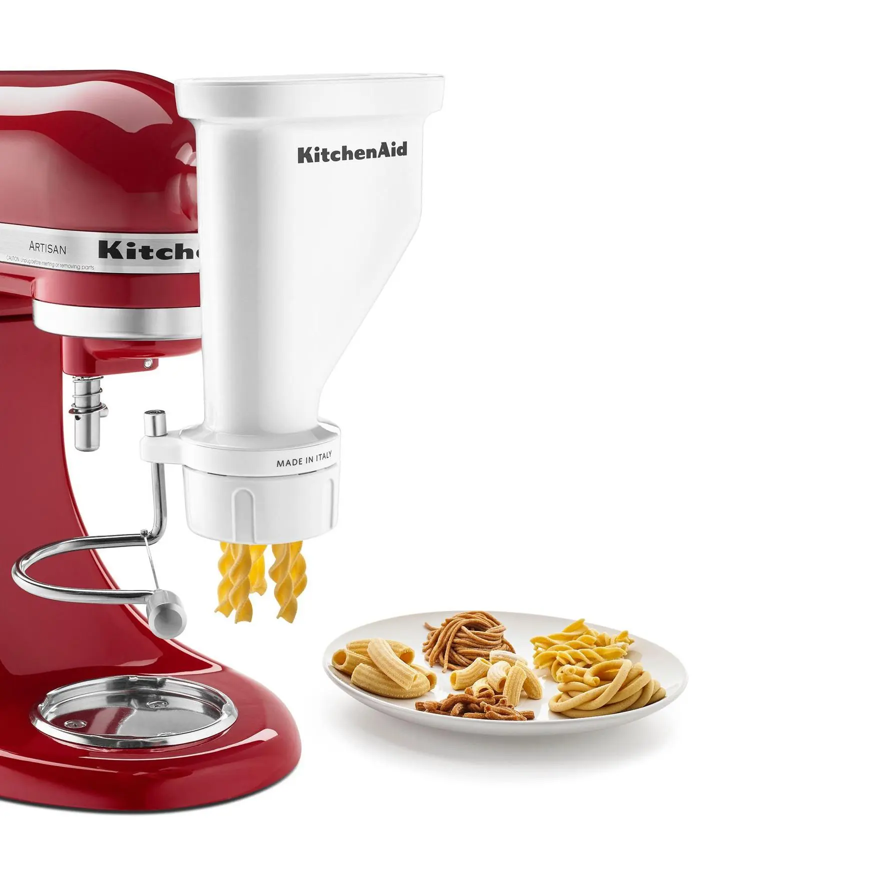 Transform your KitchenAid stand mixer into a gourmet pasta-making powerhouse with the KitchenAid Gourmet Pasta Press Attachment. This innovative attachment effortlessly connects to the Power Hub of your mixer, utilizing its motor to extrude fresh, homemade pasta right in your kitchen. With six stainless steel discs, you can explore a variety of pasta types, from spaghetti to fusilli, ensuring every pasta night is an adventure. The built-in wire cutter puts you in control of pasta length, while the included cleaning tool and dishwasher-safe components make cleanup a breeze. Dive into the delicious world of homemade pasta with ease and versatility. From KitchenAid.