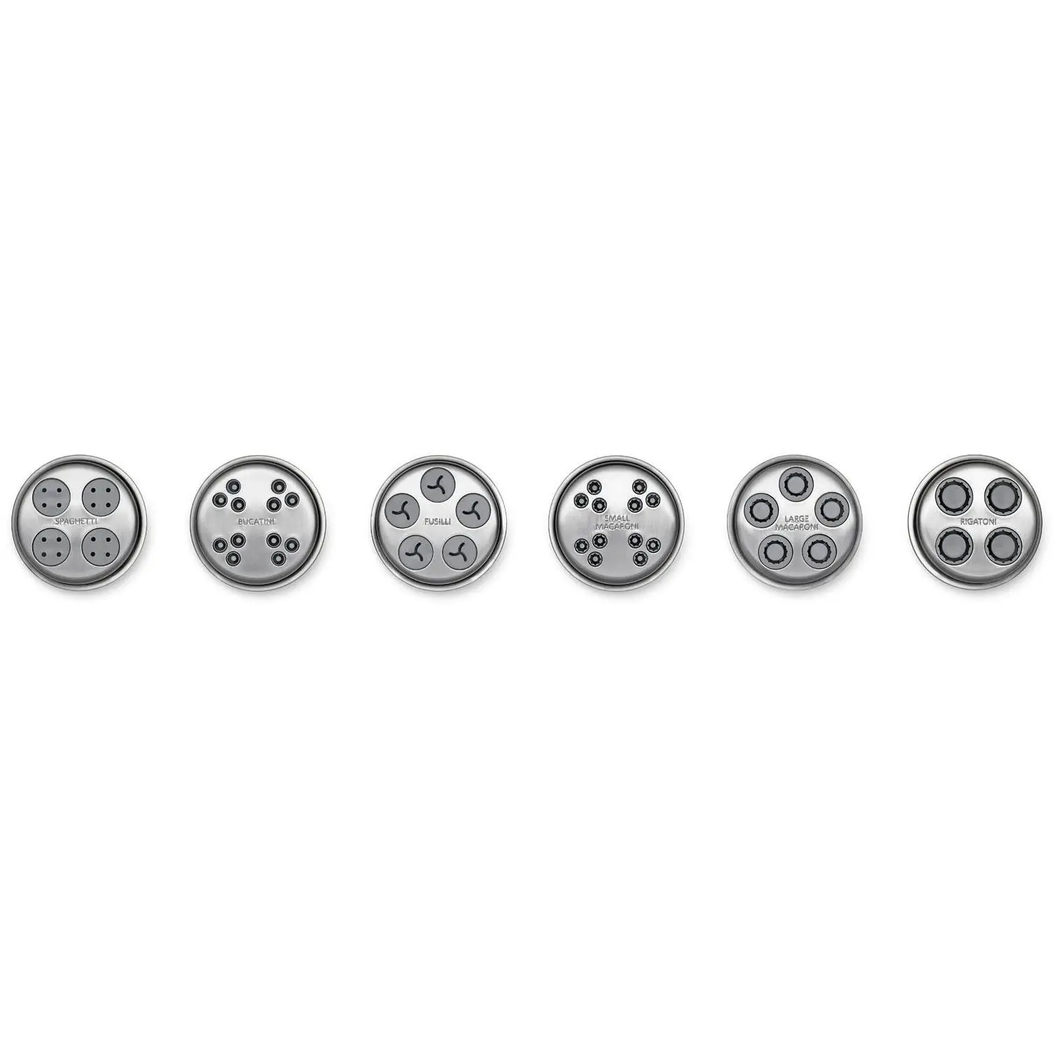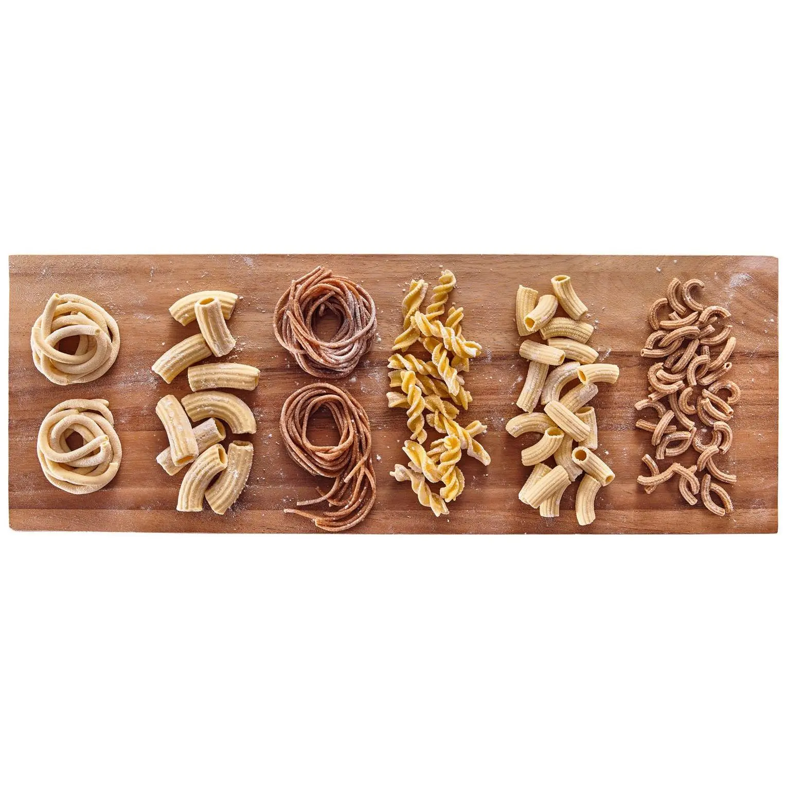 ·Six pasta shapes: spaghetti, bucatini, rigatoni, fusilli, large macaroni, and small macaroni