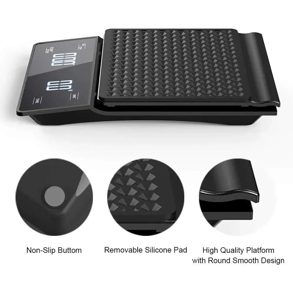·#SUPERIOR QUALITY MATERIAL# - This Kitchen Drip Coffee Scale is crafted to be sturdy, accurate, safe, and user-friendly. Constructed with a high-quality ABS platform and frame, this digital kitchen scale is durable and easy to clean and maintenance. A waterproof Silicone Non-Slip pad included.