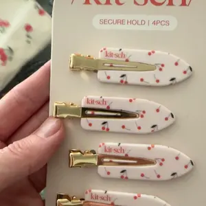 These little clips are adorable! They won't leave creases in my hair when I pin it back to get ready. They go right along with the cherry scented hair perfume and scrunchies! It all makes for a cute set!