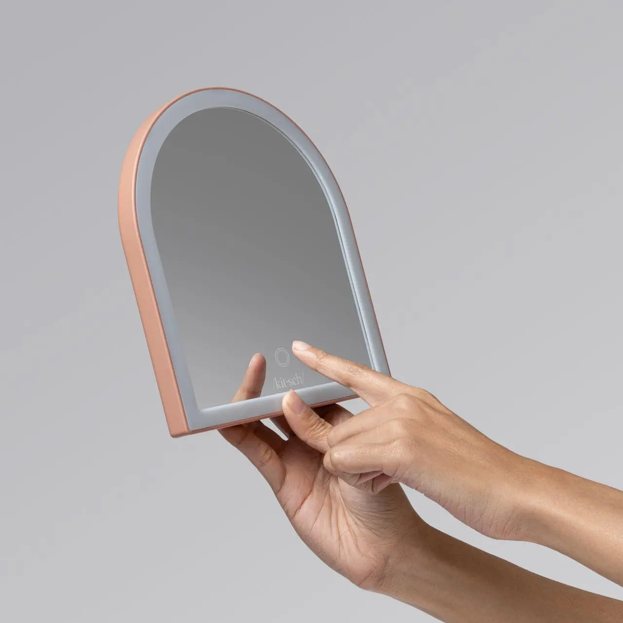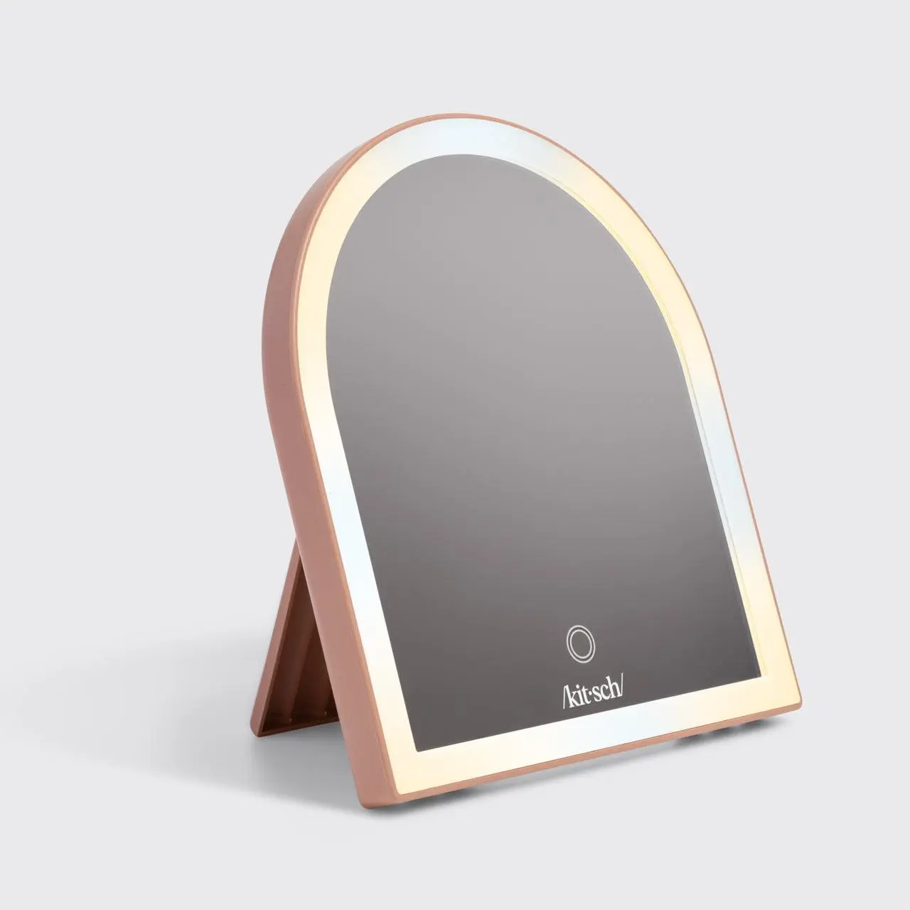 I was so delighted to receive this mirror so fast! Love my new purchase from Kitsch! It is just the right size for my night stand. I can charge the mirror from my lamp; which has a USB plug in its base. Also, perfect for your work desk or bathroom. I highly recommend!