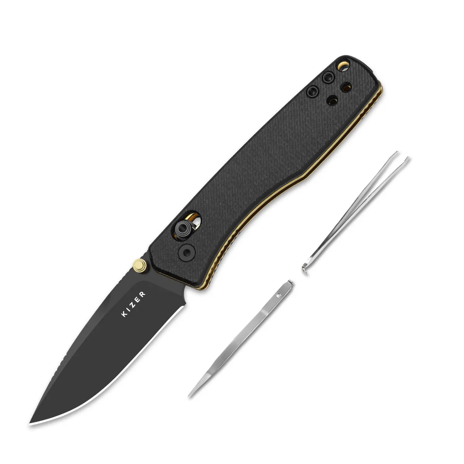 The Kizer Aegis Black Micarta Handle Black PVD Coating D2 Tool Steel V3774T1 is a precision tool. It features a black micarta handle for grip. The black PVD coating enhances durability. D2 tool steel ensures strength. V3774T1 design specifies its construction. This tool is ideal for daily tasks.