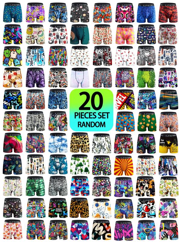 ✨ KJFISTMU 20 pcs Random Geometric Stripe Anime Print Men's Boxer Briefs Set is a delightful Christmas gift. This value pack offers medium stretch, ensuring comfort. Soft and breathable fabric makes these boxer briefs ideal for everyday wear. Stock up on specials and enjoy the convenience of a bundle set. Perfect for those seeking both style and comfort in their undergarments.