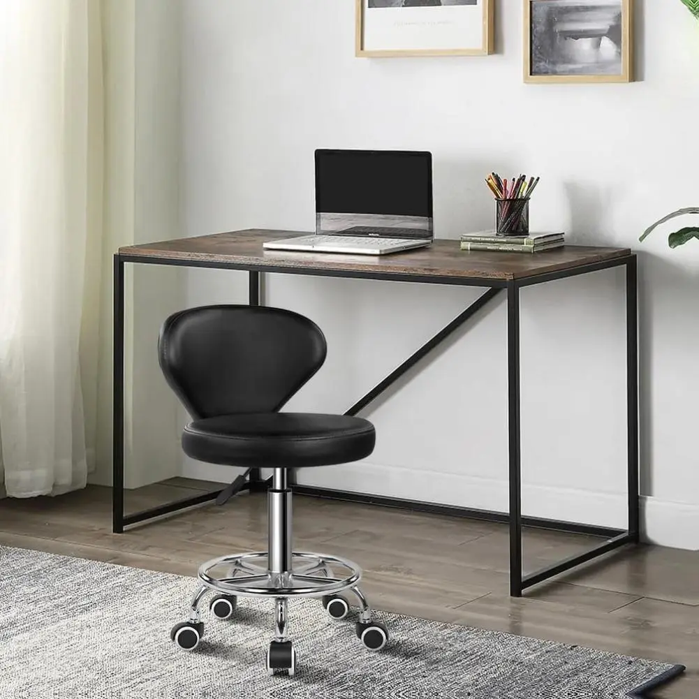 ·KKTONER Low Back Rolling Stool with Footrest Height Adjustable Drafting Chair with Wheels Black