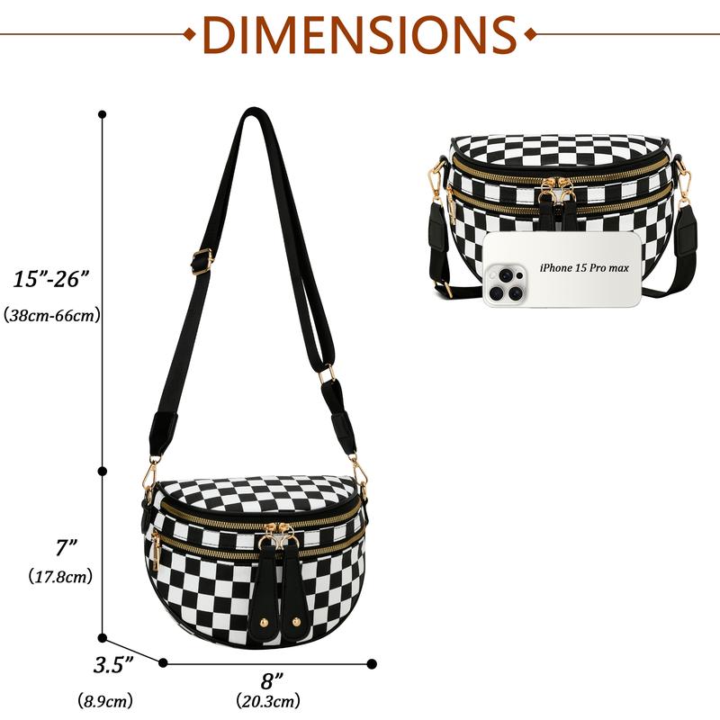 ·Functional: This trendy sling bag features 2 main zip pockets, and 1 back zip pocket, 1 inside zip pocket. Roomy enough to store your phone,wallet,cards,cash,lipstick,passport and other essentials.