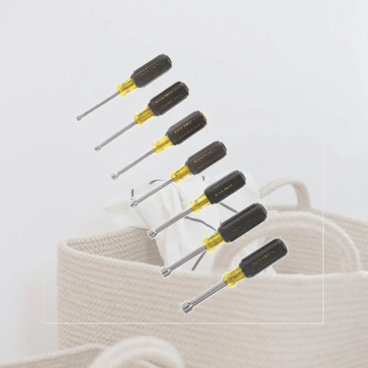 General-purpose selection of the most frequently used nut drivers. Opening Size: 3/16" 1/4" 5/16" 11/32" 3/8" 7/16" 1/2". Opening Type: Hex. Shank Length: 3". Shank Type: Round. Includes: Reusable Plastic Container. Shank Finish: Chrome.