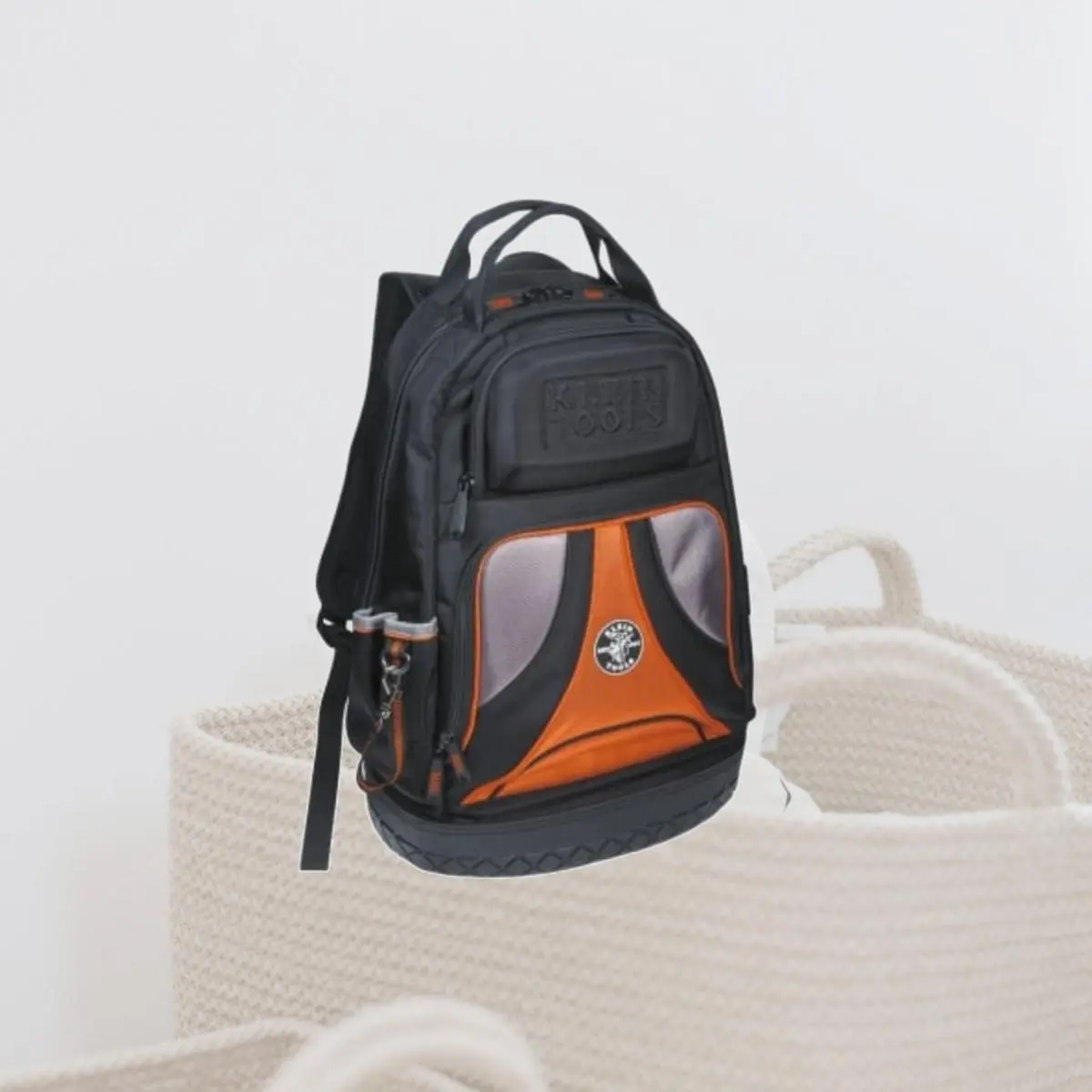 Features 39 pockets for tons of tool storage. Hard, molded front pocket protects safety glasses. Front zipper pocket for small parts and tools. Taller bag and interior pockets allow for long screwdrivers. Fully molded bottom protects from the elements. Orange interior for easy tool visibility. 1680D ballistic weave for durability. Shoulder straps with extra padding and handles for easy carrying. Dimension - 14.5 x 7.25 x 20 in.. Item Weight - 6 lbs..