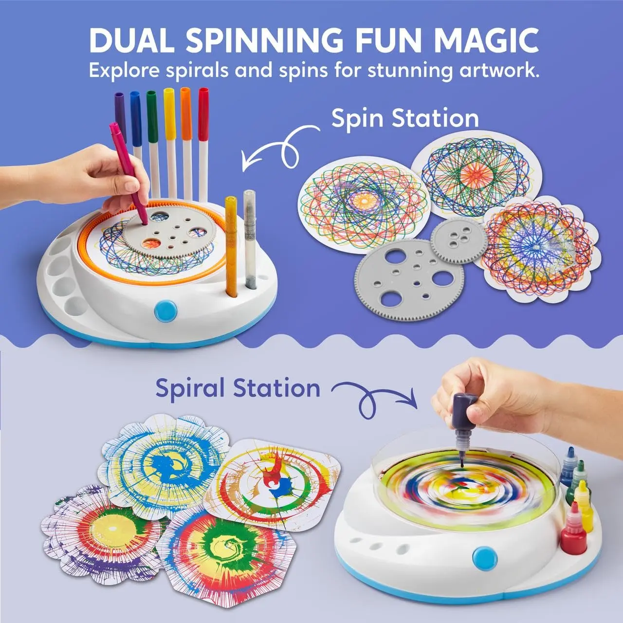 Dive into endless creativity with the Klever Kits Spin Art! This Spin Spiral Machine Kit is ideal for boys and girls aged 6 and up. It's a fun DIY project that turns into a painting spinner toy. Perfect for birthdays, it encourages artistic expression. 🎨