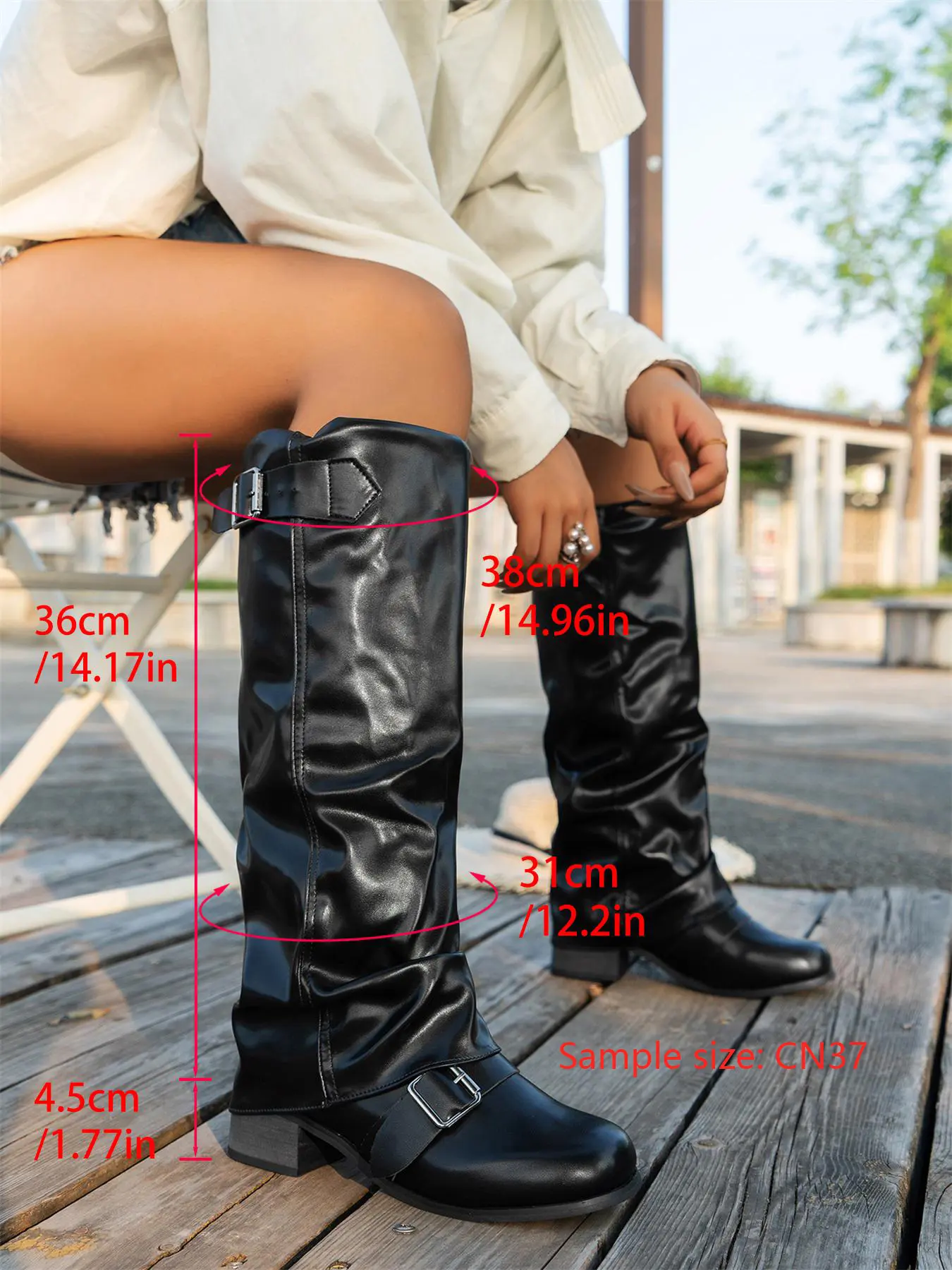 Love these cute boot but they make rubbery sponge bob noise whenever I walkš maybe whenever thereās crowds then they wonāt sound as much but overall they fit snug as a bug . My size is the same as my superstar adidas. Iām 5ā1, they fit below the knees just fine.