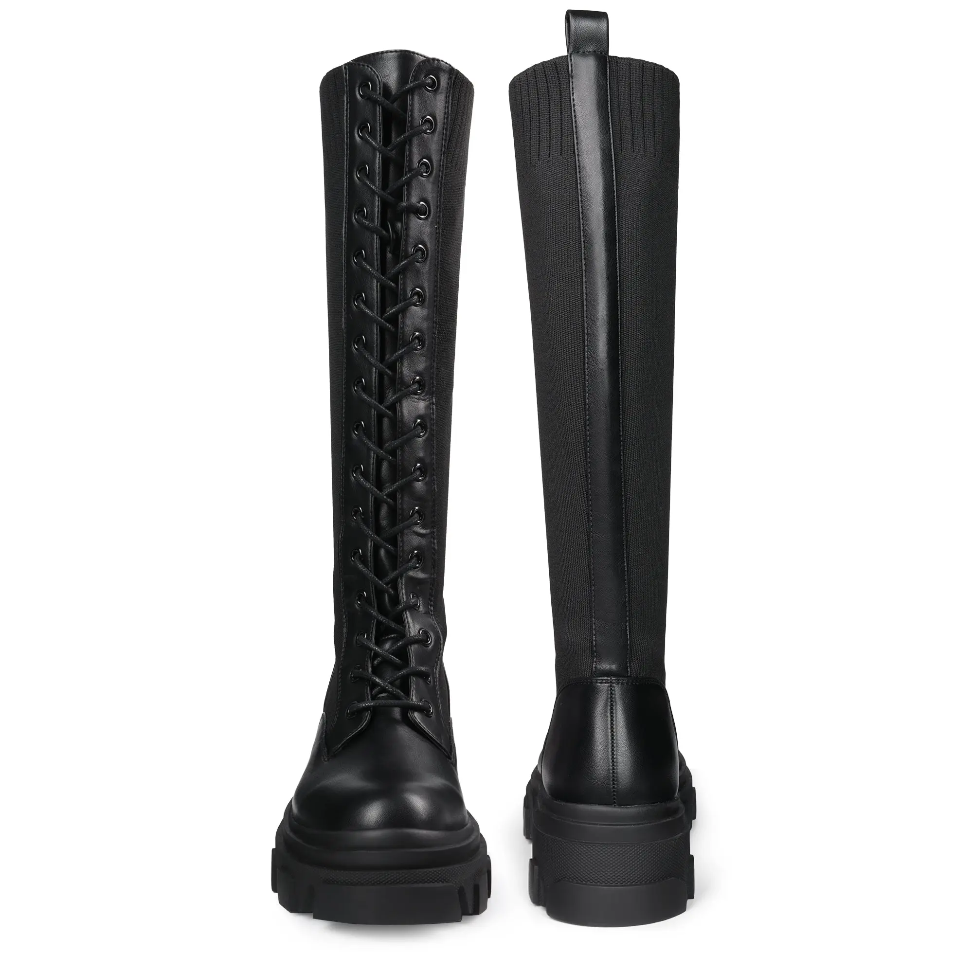 ·Trendy Design: Chunky knee-high boots are a must-have for your closet. The PU upper is smooth & easy to clean.