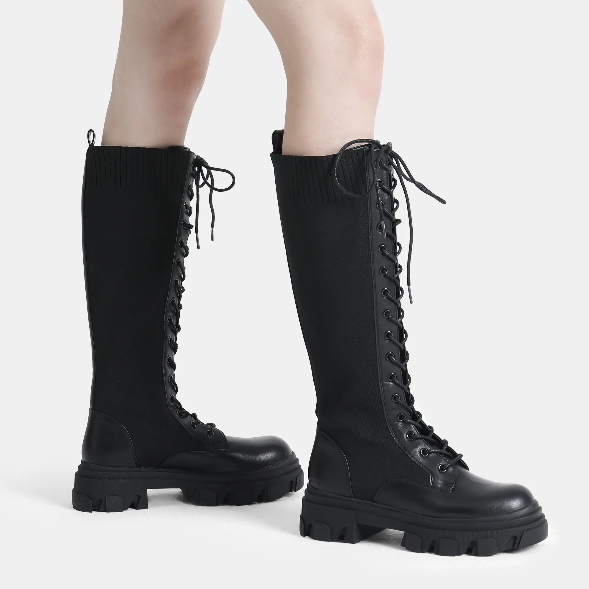 I freaking love theeeeeseee!!! 🖤 #boots#tiktokshopfind#ttsfind#kneehighboots#combatboots#puleather#fashionfind#shoes#shoehaul#fashionable#fallboots