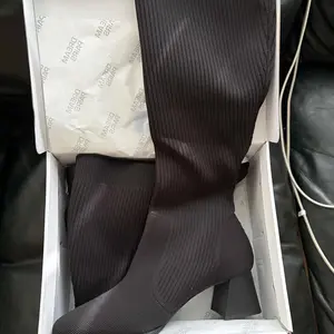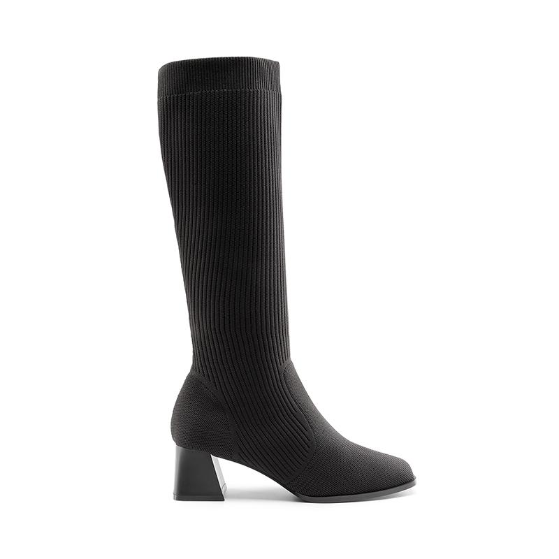 Size 9. I should have gone up a size because they are kind of narrow. I love them. Nice thick ribbing and hugs my legs perfectly. Low heel but It’s exactly what I needed. Video shows they stop right under the knee. I will def buy from this seller again.