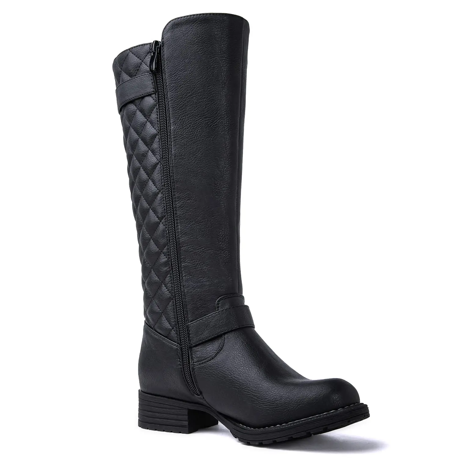 Introducing Our Fashion-Forward Women's Quilted Knee High Boots With A 1-Inch Heel.Designed For Both Style And Comfort, These Long Boots Feature A Striking Quilted Pattern That Adds A Touch Of Luxury And Sophistication To Any Outfit. The Intricate Stitching Not Only Enhances The Visual Appeal But Also Provides Added Texture And Dimension, Setting You Apart From The Crowd With Effortless Elegance.Crafted With Your Comfort In Mind, These Low Heel Boots Boast A Modest 1-Inch Heel, Offering Just The Right Amount Of Lift For All-Day Wear. Whether You're Running Errands Or Enjoying A Night Out, You Can Count On These Dressy Boots To Keep You Looking And Feeling Fabulous From Dawn Till Dusk.But It's Not Just About Looks – These Boots Are As Practical As They Are Stylish. With A Convenient Zipper On The Side, Slipping Into And Out Of Them Is A Breeze, While The Quilted Design Ensures A Snug And Secure Fit With Every Step.
