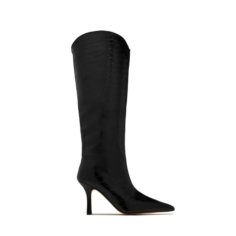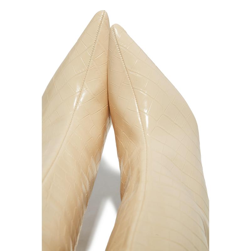 Ivory Embossed Croc Knee High Mid Heel Boots
