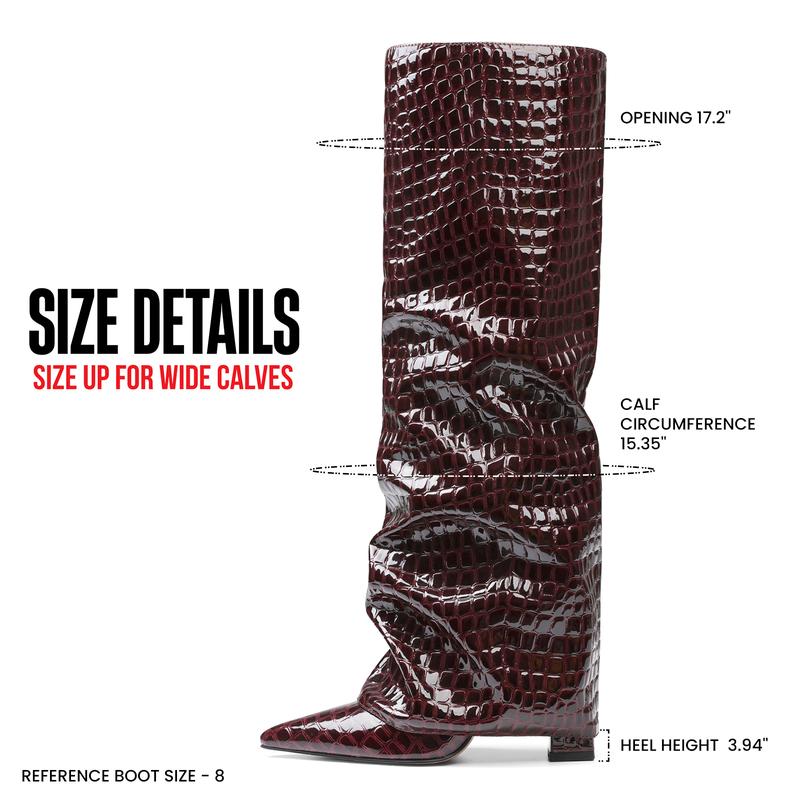 [ FASHION STYLE ] — Featuring a pointed toe, chunky high heel, and stylish fold-over design, these modern fashion boots combine elegance with a bold statement look.