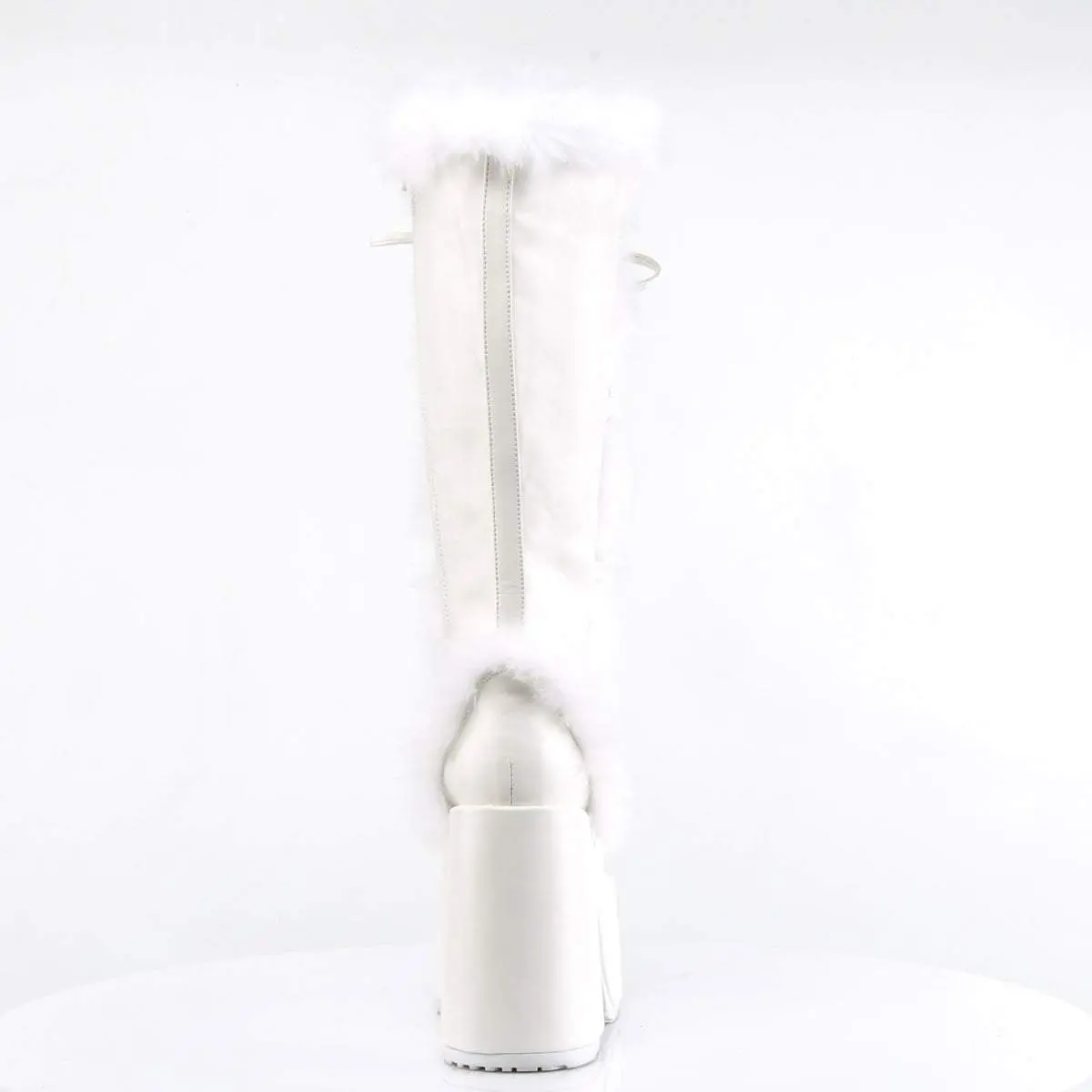 The Camel-311 women's knee-high boots feature a striking 5" (127mm) heel and a 3" (75mm) platform. These lace-up boots offer a bold and edgy look. The faux fur trim detail adds luxury and warmth. Perfect for making a statement, these boots are ideal for any outfit.