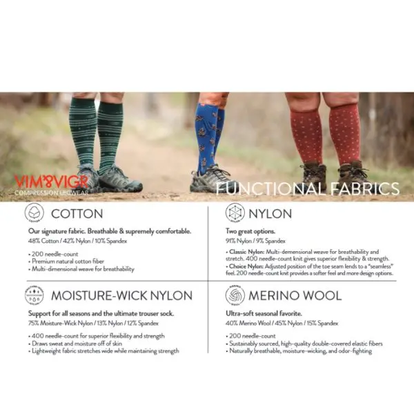 Give your legs reliable support without compromising comfort or style. Vim & Vigr’s knee-high cotton compression socks use graduated compression to help improve circulation, reduce leg fatigue, and support all-day wear. Made from a soft, breathable cotton blend, these socks provide balanced pressure from ankle to calf without feeling tight or restrictive. Ideal for long shifts, travel, extended sitting, or daily use. Designed with a secure stay-up fit, classic pinstripe style, and latex-free materials. Suitable for work, travel, pregnancy support, and everyday wear.