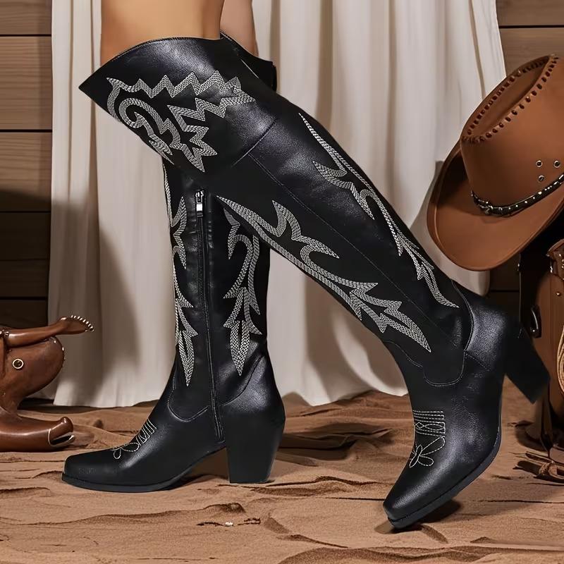 Size : The heel height of the women's knee high cowgirl boots is 7.5cm/2.95 inches. If you have any size issues, please contact us about this.