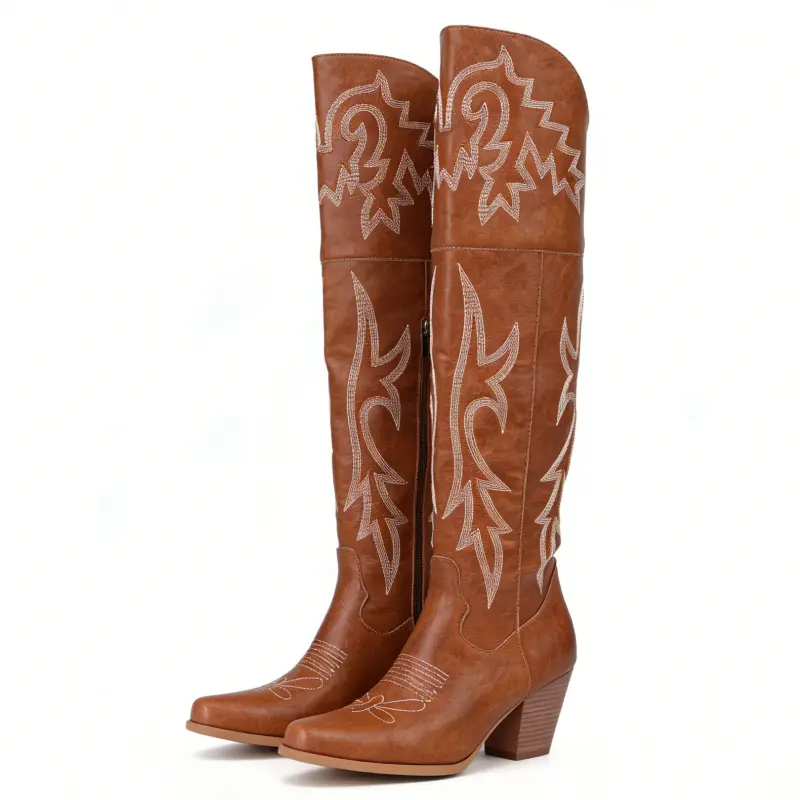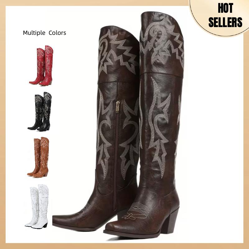 Feature:The feature of knee high boots for women are square toe, waterproof, modern, zipper embroidered design stylish and chunky heel.and there are three colors of Red/Brown/Black for you to choose.