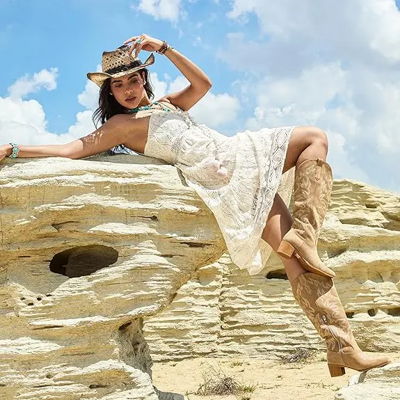 One of the comfiest pairs of cowboy boots I’ve owned. I wear a size 11 so it’s hard to find boots. I like that It has a zip on the side to allow you to get your foot in. It’s wide calf approved, super comfortable and knee-high.