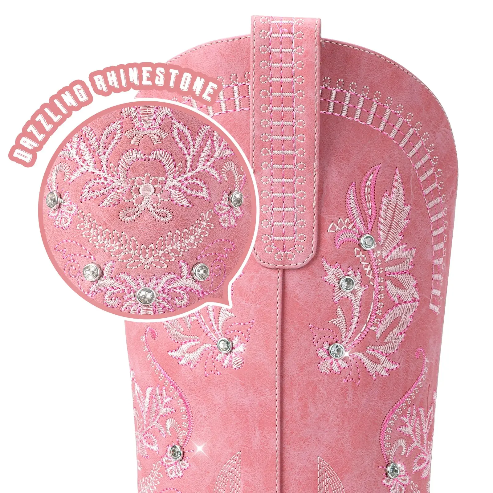 【Retro and Fashion】Our brand's women's cowgirl boots epitomize the flawless fusion of vintage western and modern fashion, ensuring you stride with confidence and charisma wherever your journey takes you. Wide calf cowboy boots for women boast timeless embroidery designs, sparkling rhinestones, and a classic pointed toe, elevating your style with a captivating blend of vintage charm and modern allure.