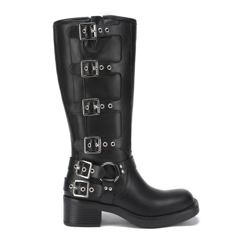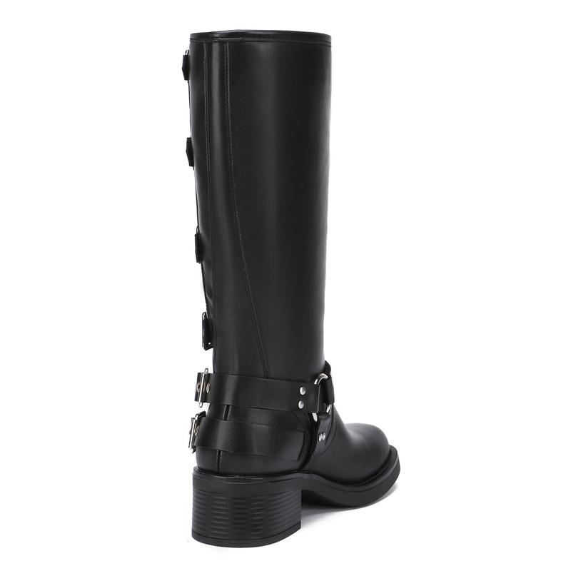 ·DESIGN: The highlight of this woman's riding boots is the adjustable metal buckle, with delicate alignment, and a stiff fit, combined with a biker style, showing fashion and vintage atmosphere.