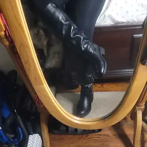 Cons: All the extra bunched material around the lower calf / ankle area is not attractive. Also, I know this is a synthetic material, but it definitely doesn't have the look of leather.