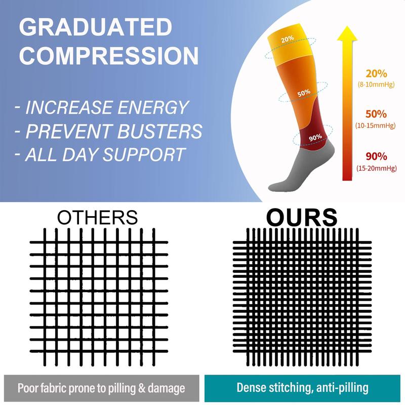 😍 I absolutely love these compression socks! The vibrant colors are stunning, and the soft, high-quality material feels amazing. They're incredibly comfortable on my calves and provide just the right amount of support and energy to keep me going all day. Highly recommended!
