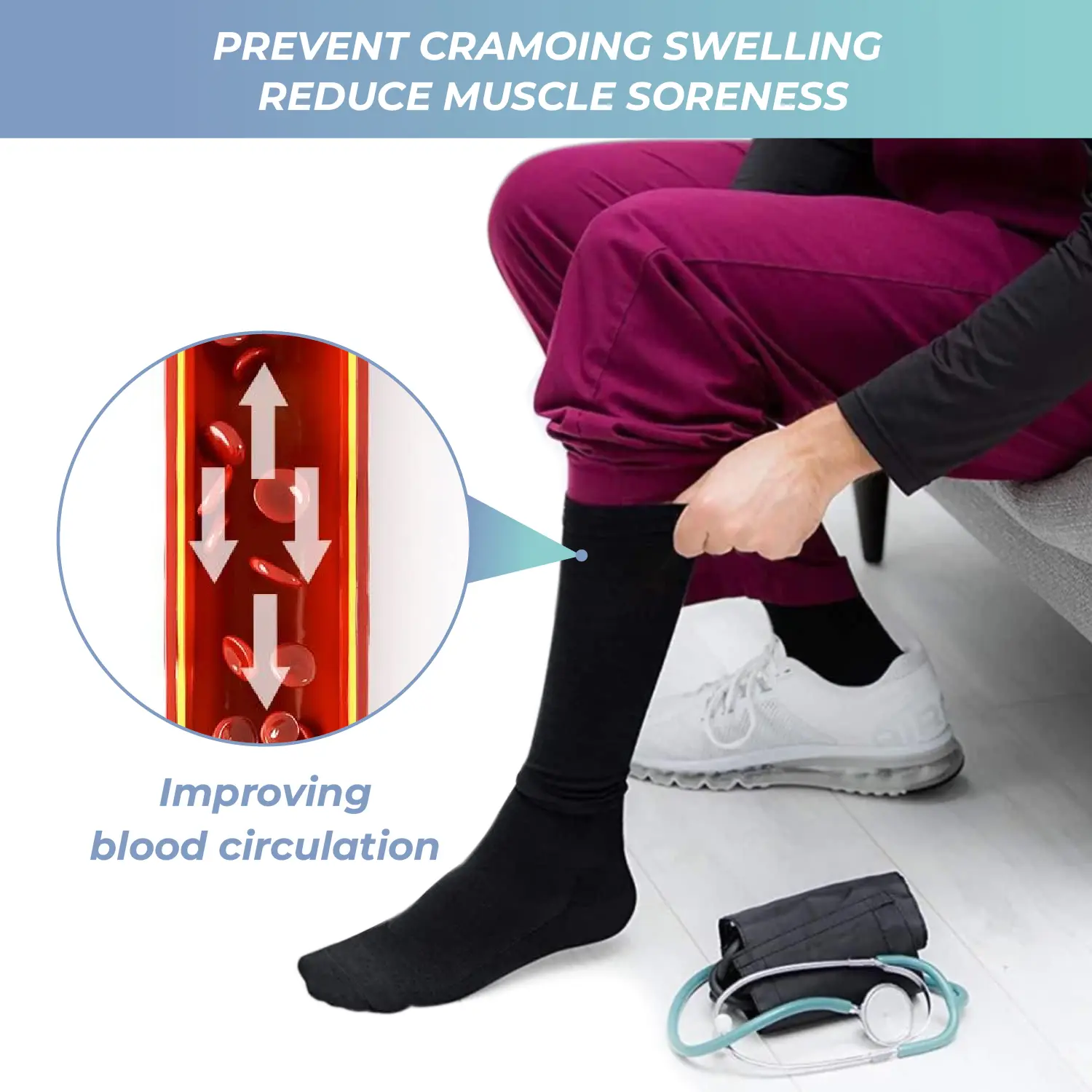 The compression socks are made out of great material the problem is the top does not allow enough stretch in the sock which causes an indent in your leg which makes it uncomfortable to wear for lengthy hours.