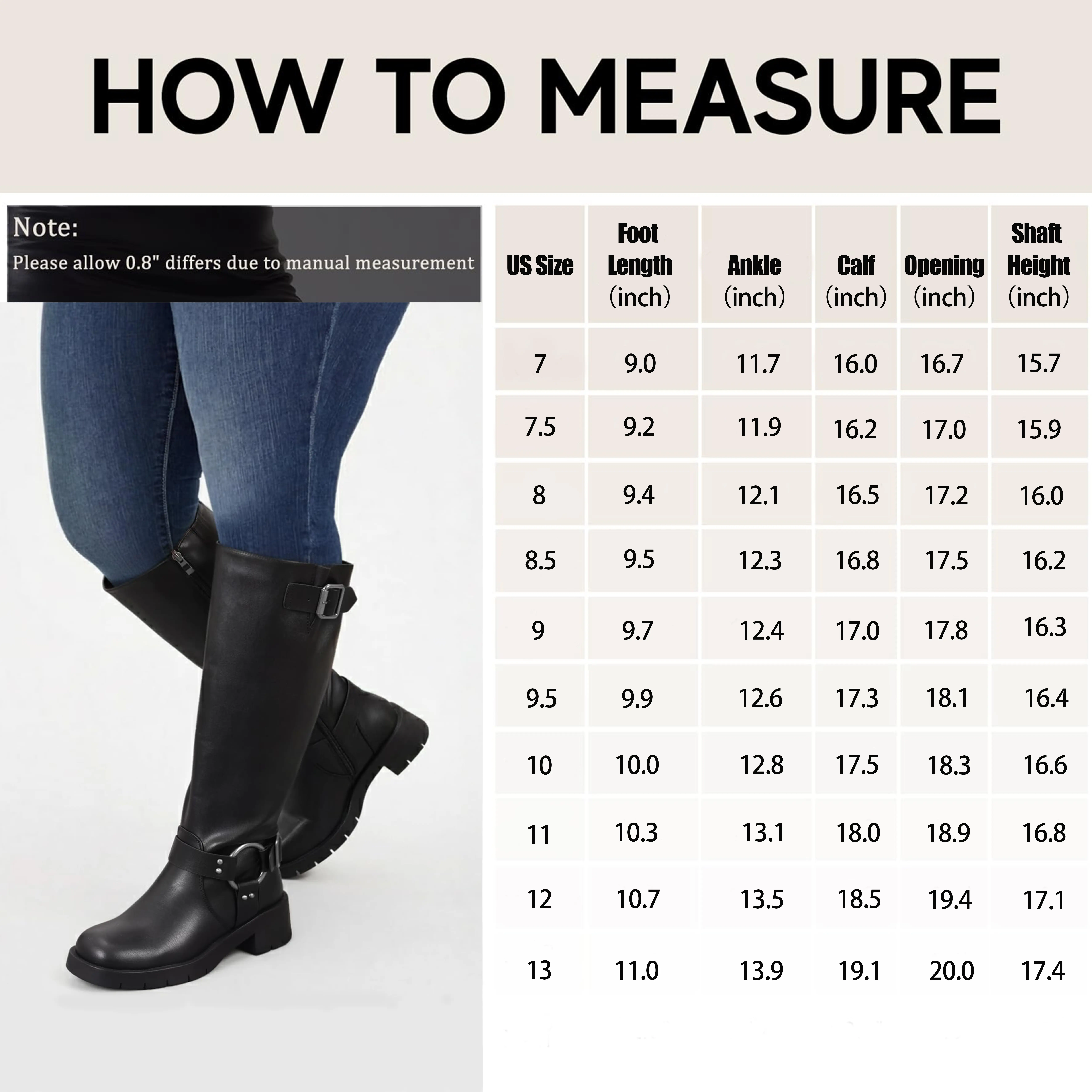 Giving them 3 stars bc they are cute, but unfortunately even at size 9 x-wide calf, my 19 inch calves barely fit and they were too tight & I returned them, could have also sized down to an 8.5, but I’m sure those wouldn’t have zipped up if I was struggling already
