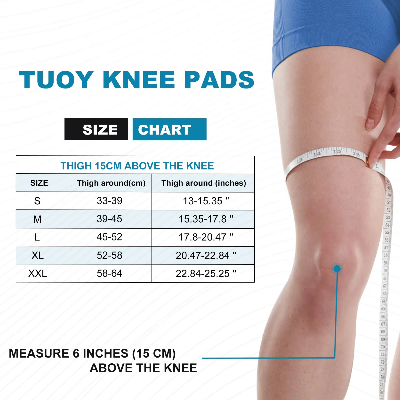 ·Comes in 5 sizes: Small, Medium, Large, X-Large, XX-Large. Suit for youth and adult’s sizes. Please measure the circumference of 6 inches above your knee joint cap and choose from our size chart. If you require tighter compression, size down to get a tighter fit.