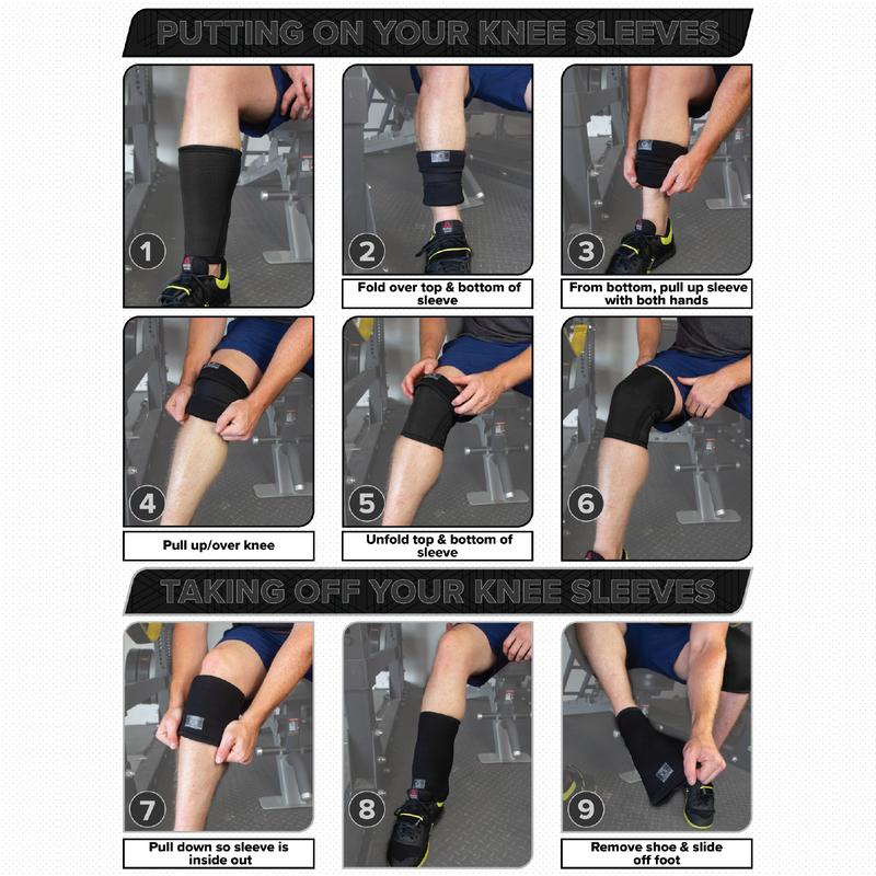 Due to the high grade construction of the knee sleeves, it may be difficult to put on and take off. Please see the instructions included with your sleeves.