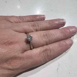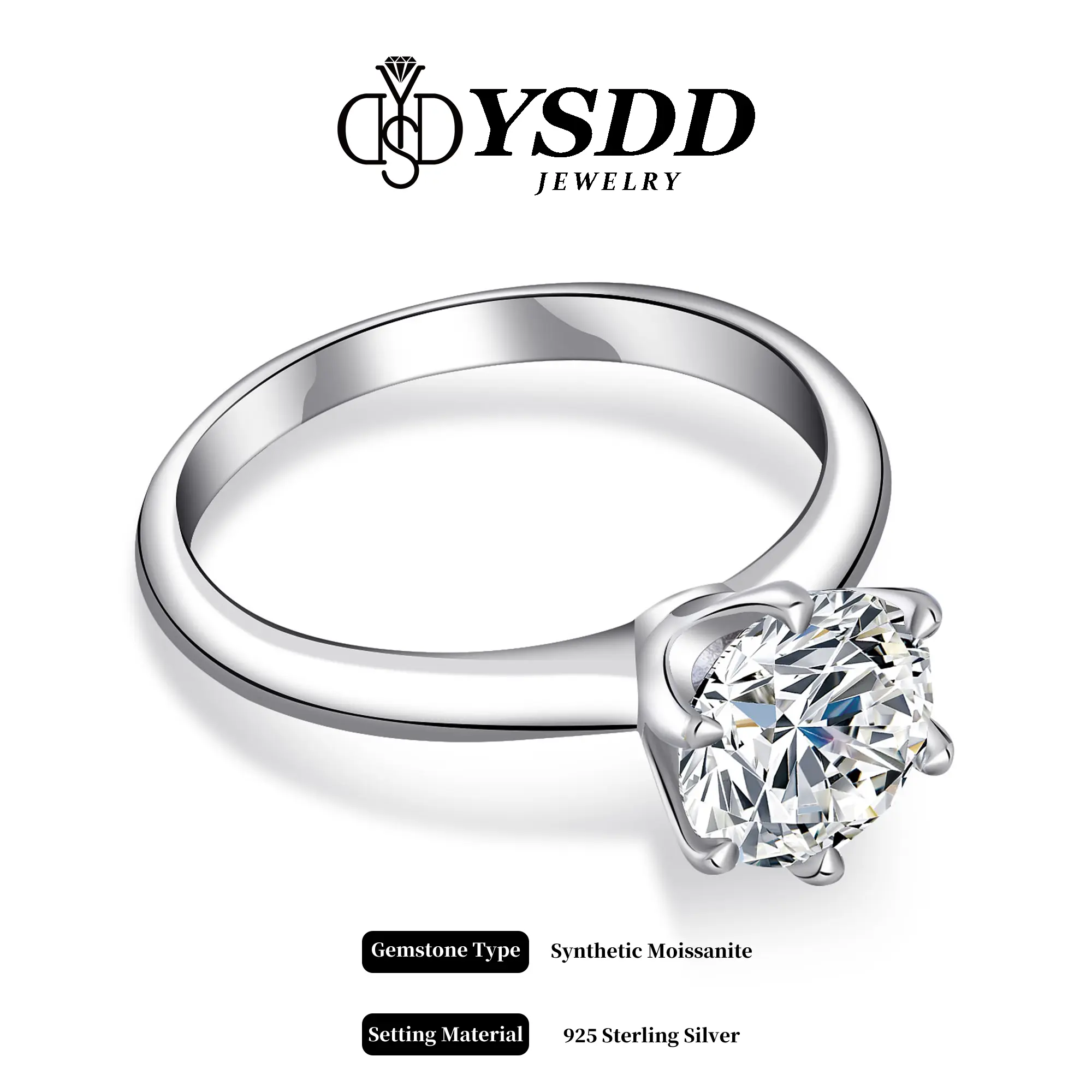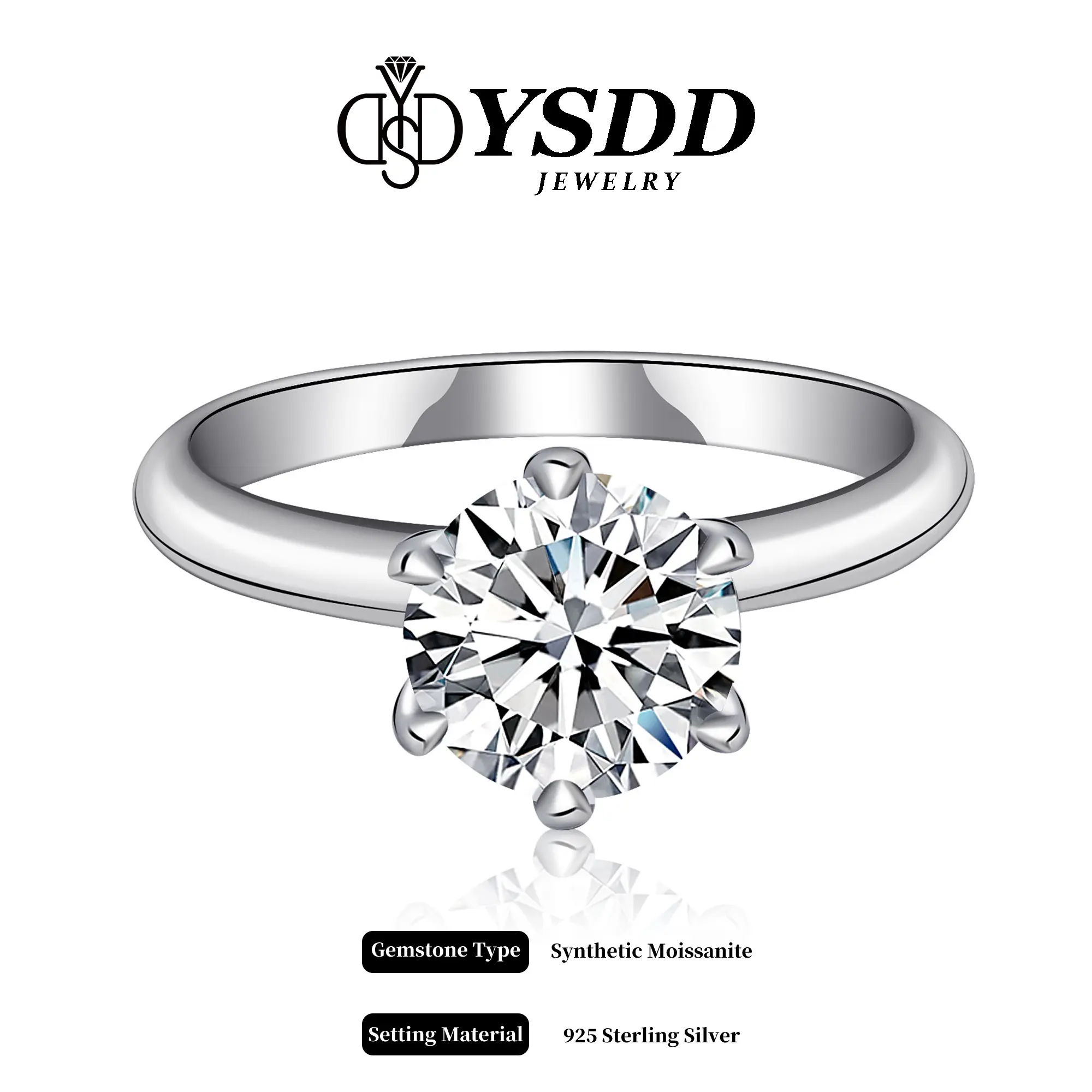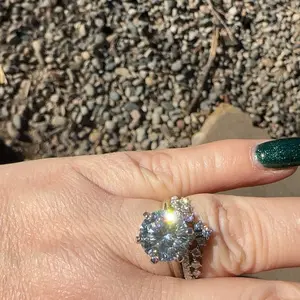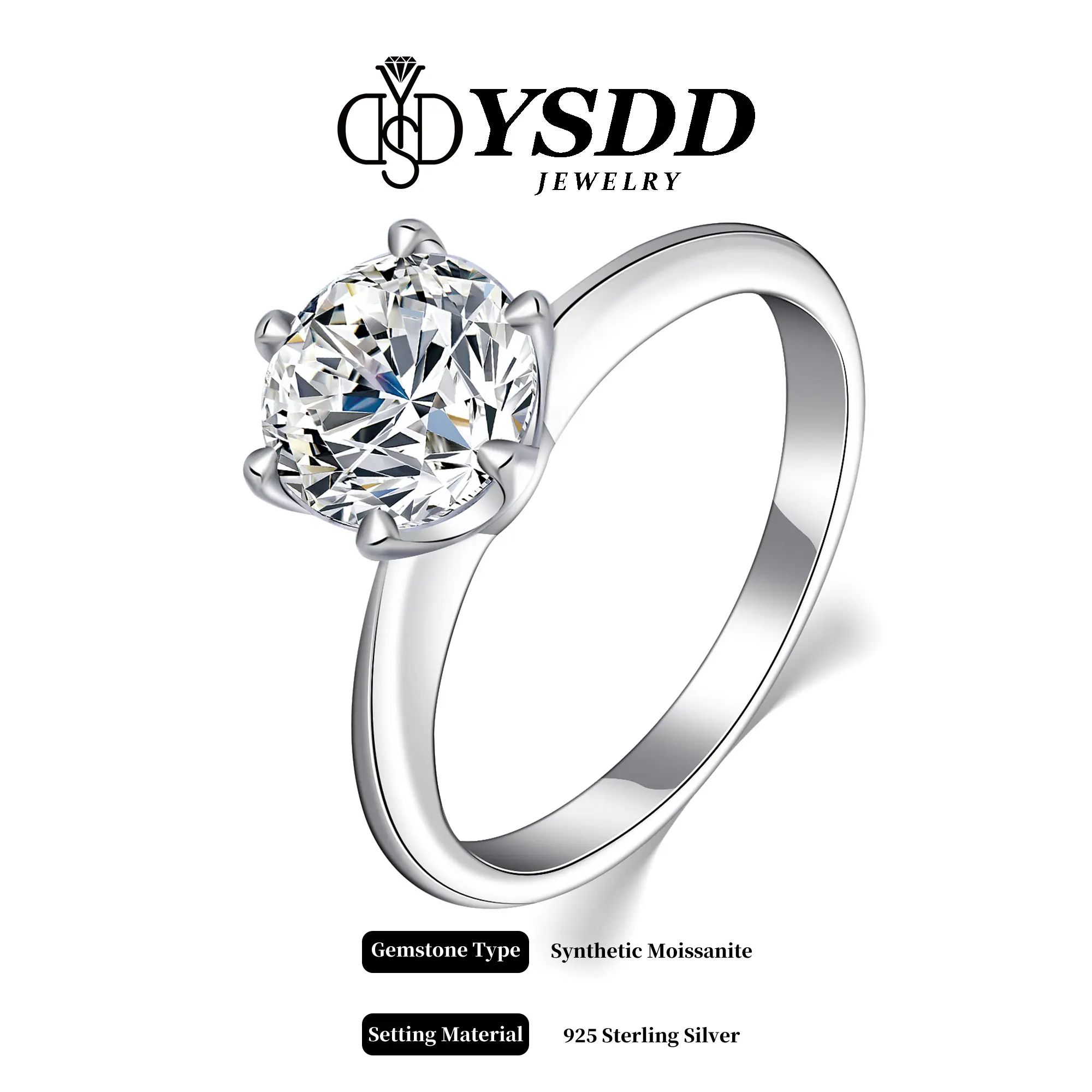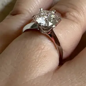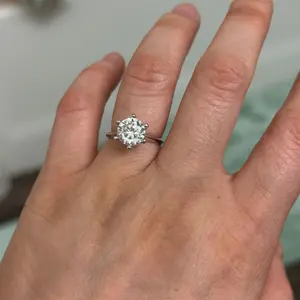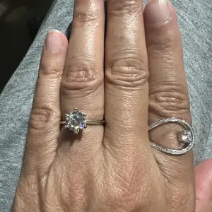 Perfection. 3ct. Moissanite in silver, flawless, sparkly, and brilliant. YSDD never lets me down. My daughter likes the free buckle ring too. Thanks! 💍