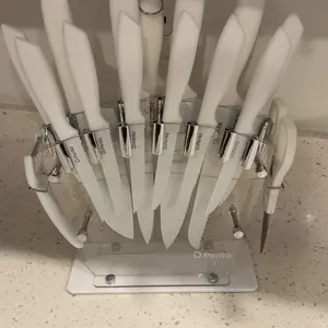 Elevate your culinary skills with the D.Perlla 16-piece knife set. Crafted from high-quality stainless steel, these precision-stamped blades are lightweight yet strong. The ergonomic soft handles offer a comfortable grip, ensuring fatigue-free cutting. Ideal for slicing through tough cuts effortlessly.