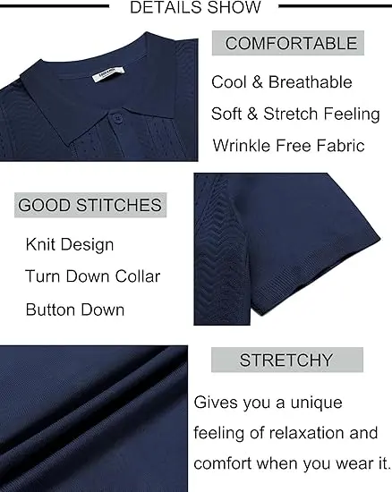 ·Fabric Finesse: Our mens knit shirts are crafted from a comfortable and skin-friendly fabric that feels as good as it looks. Its lightweight, breathable, elastic composition and good stitching makes you stay cool and comfortable, making it a nice choice for casual and lazy vacation days