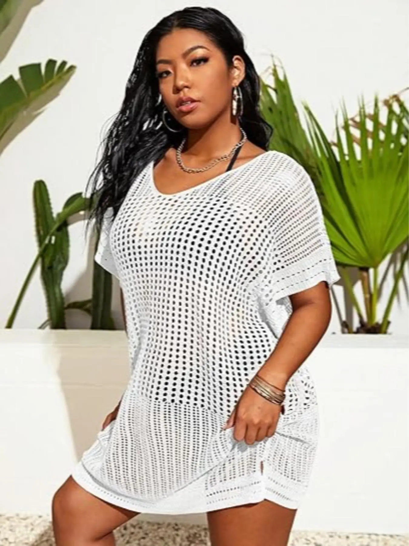 This is not as pictured it has elastic around the bottom it’s definitely not a cover up dress it’s a shirt. I’m very disappointed with this cover up. Very deceptive