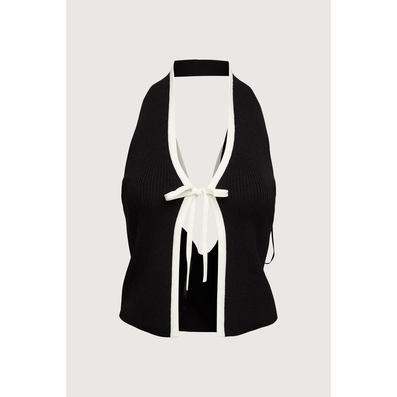 5. KNIT HALTER TOP WITH CONTRAST BOW