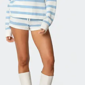 Very cute, shorts fits perfectly but not soft. More like beach cover up material. Still like them tho