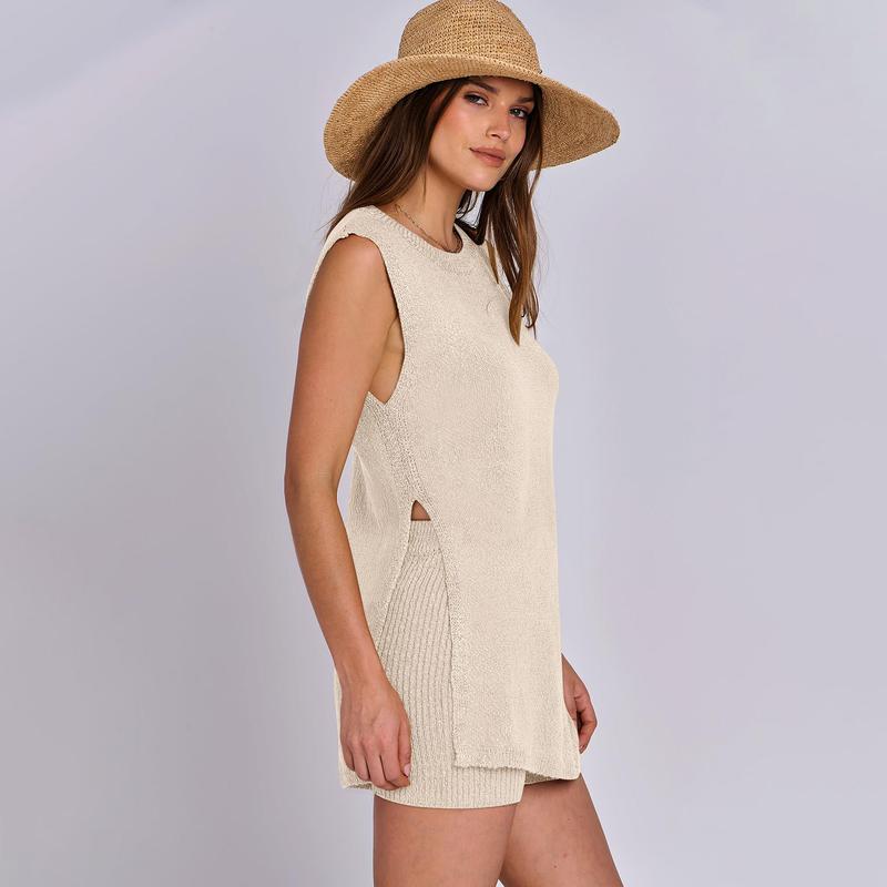 ANRABESS Women Summer 2 Piece Outfits Sleeveless Knit Sweater Top & Shorts Soft Lounge Sets Travel Beach 2025 Clothes