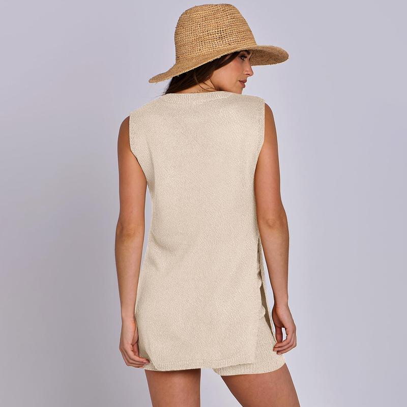 5. ANRABESS Women Summer 2 Piece Outfits Sleeveless Knit Sweater Top & Shorts Soft Lounge Sets Travel Beach 2025 Clothes