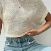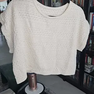 The cutest knit top in cream color. Soft & it's the perfect crop. I love it!