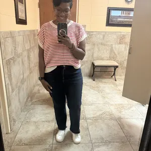Love this knit top! Ordered a size up to I could do a front tuck but definitely could have stuck true to size. Super soft and perfect for spring and summer!!